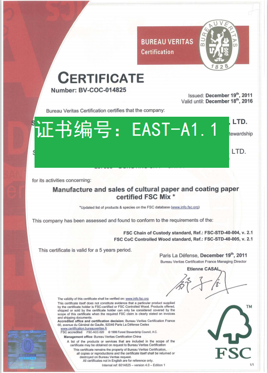 FSC證書有效期:5年