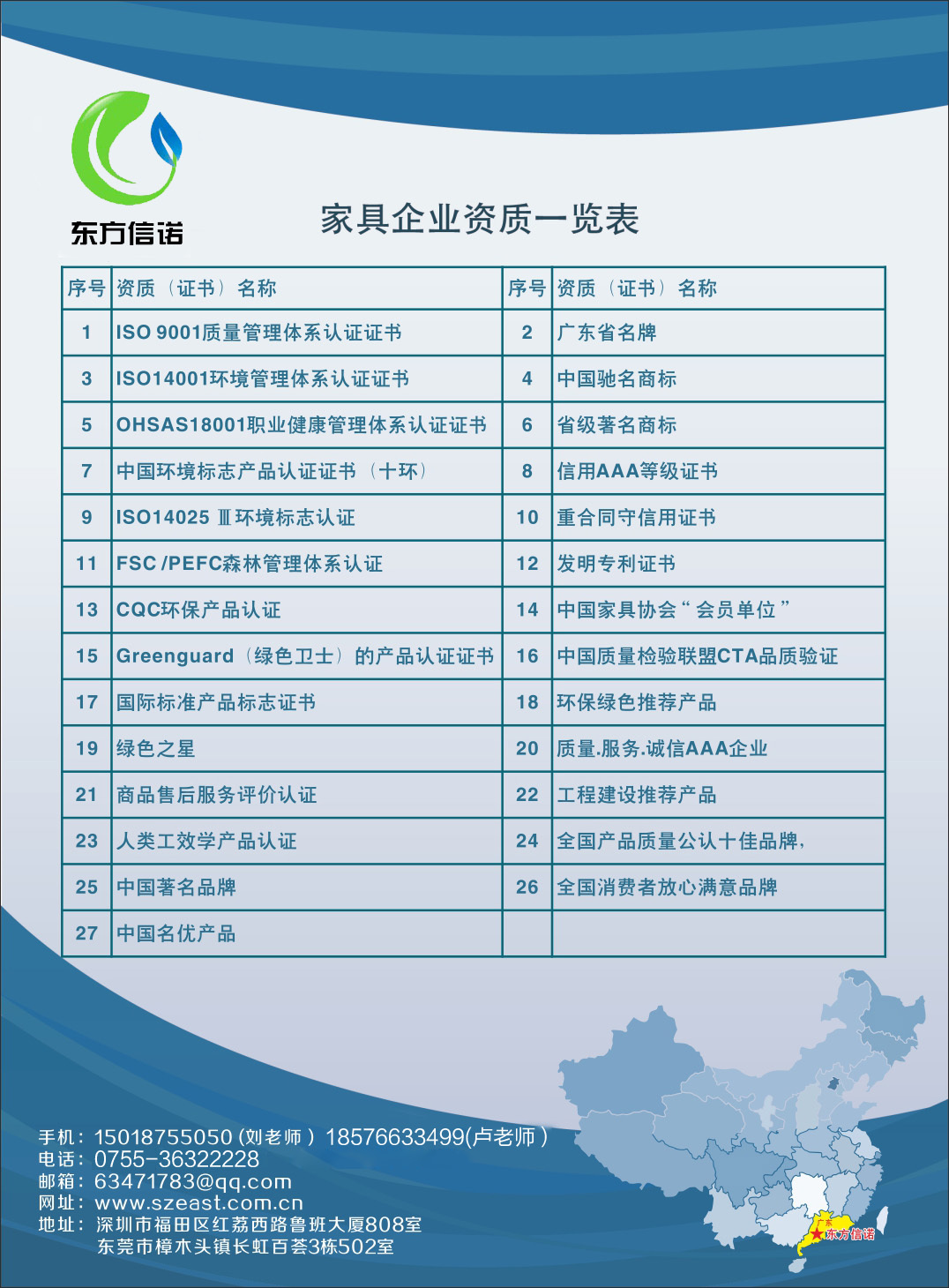 而每年深圳市東方信諾也會(huì)派人去家具展參觀這些家具。希望在深圳的家具展上看到我們的同事,可以了解一下我們辦的證書,以提升家具環(huán)保的需求。